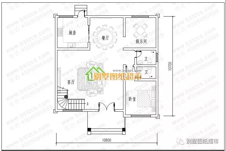 此款別墅圖紙編號: DC0085,二層建筑,結構形式為磚混結構,開間10.8米,進深10.7米,占地面積116.4平方米,建筑面積273.78平方米,主體造價22-26萬。
