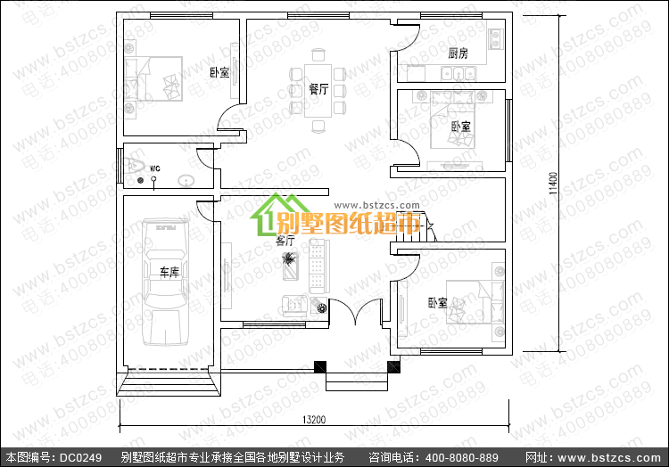 第四張:漂亮的一層帶車庫農村別墅戶型圖紙