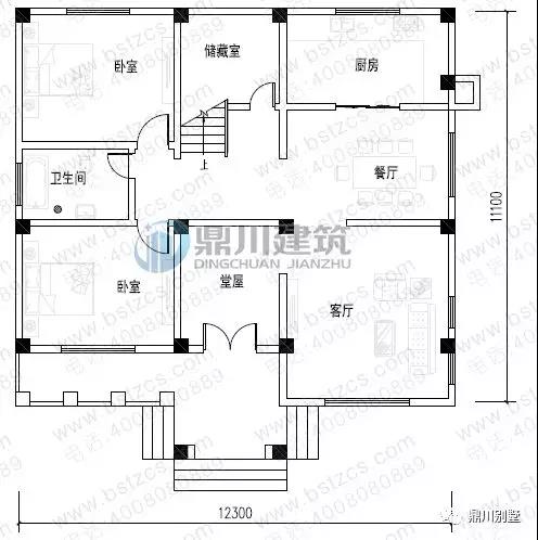一 層:走廊、堂屋、客廳、2臥室、廚房、餐廳、衛生間、儲藏室