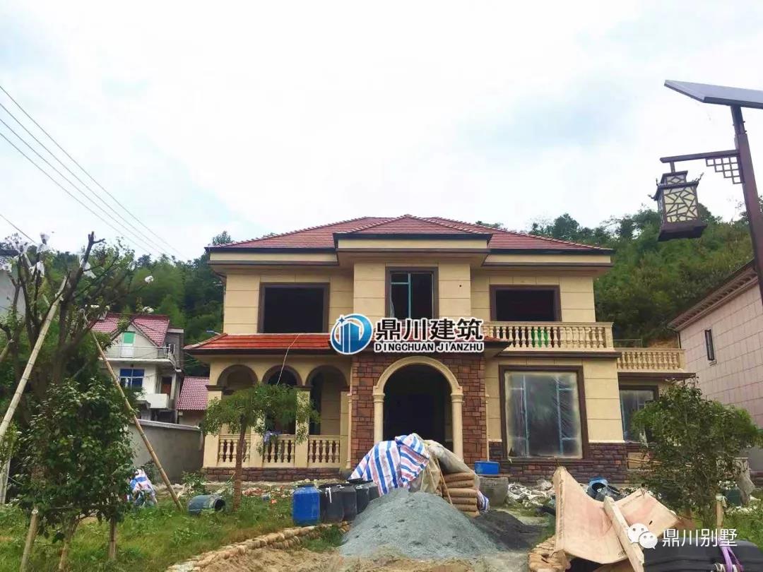 此款案例建出來的外觀效果和效果圖高度一致,房子的顏色搭配也很和諧經典,一層的文化石和羅馬柱凸顯了房子的立體感。整個房子顯得高端又極具質感。也許村里很多三層的房子也沒有這樣好的效果。