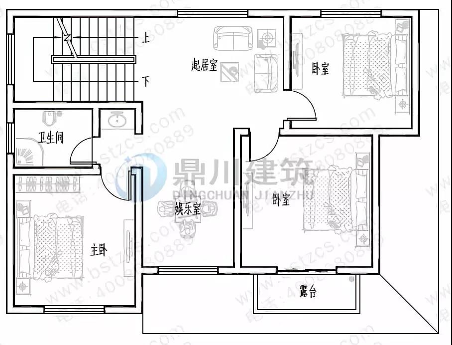 二 層:起居室、娛樂室、臥室(附陽臺)、臥室、衛生間、露臺