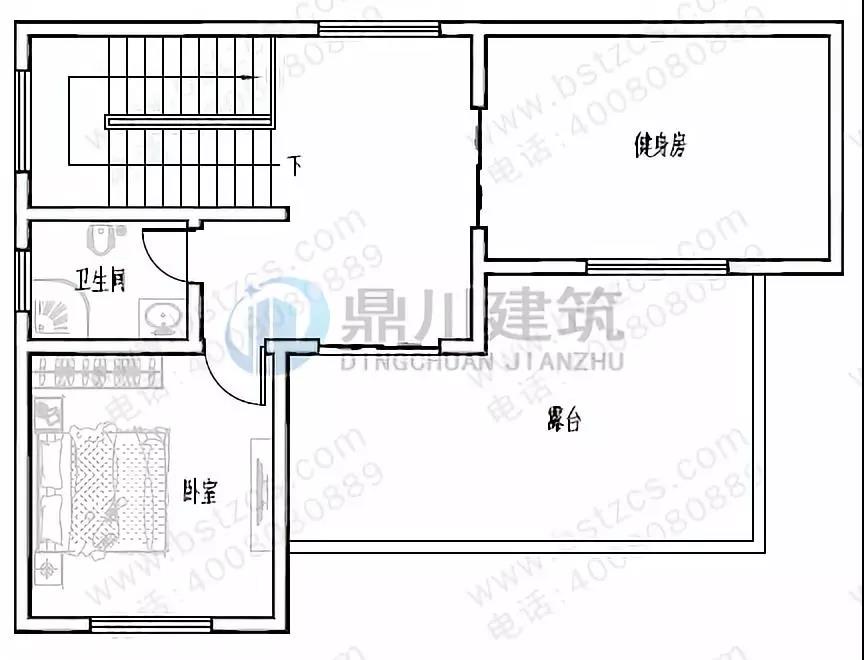 三 層:健身房、臥室、衛生間、露臺