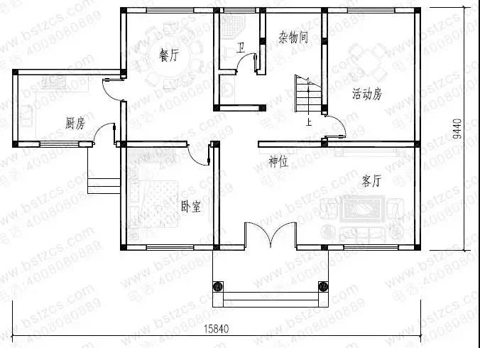 一 層:客廳、臥室、活動房(或臥室)、廚房、餐廳、雜物間、衛生間
