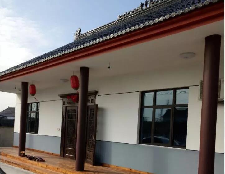 新中式風格的白墻黛瓦,外墻沒有過多的繁瑣裝飾,但整棟小別墅的坡屋頂的琉璃瓦和雙龍戲珠的裝飾,既保持了中國的傳統感,又有時代感。