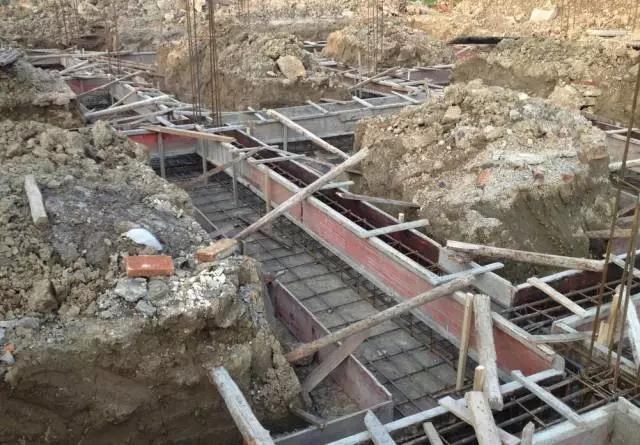 條形基礎,基礎布筋,立模完成后準備現澆: