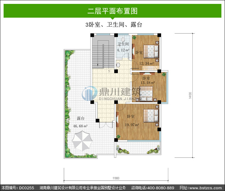 | 二 層: | 3臥室、衛生間、露臺 | |||