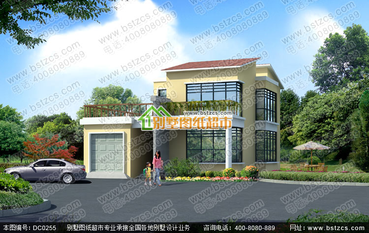 二層帶車庫現代風格小別墅設計圖紙_別墅圖紙超市,二層帶露臺現代別墅