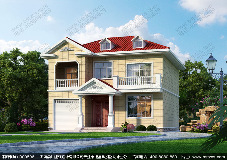 新農村二層帶車庫實用型農村別墅設計圖紙_農村兩層自建房設計圖紙,鼎川別墅圖紙